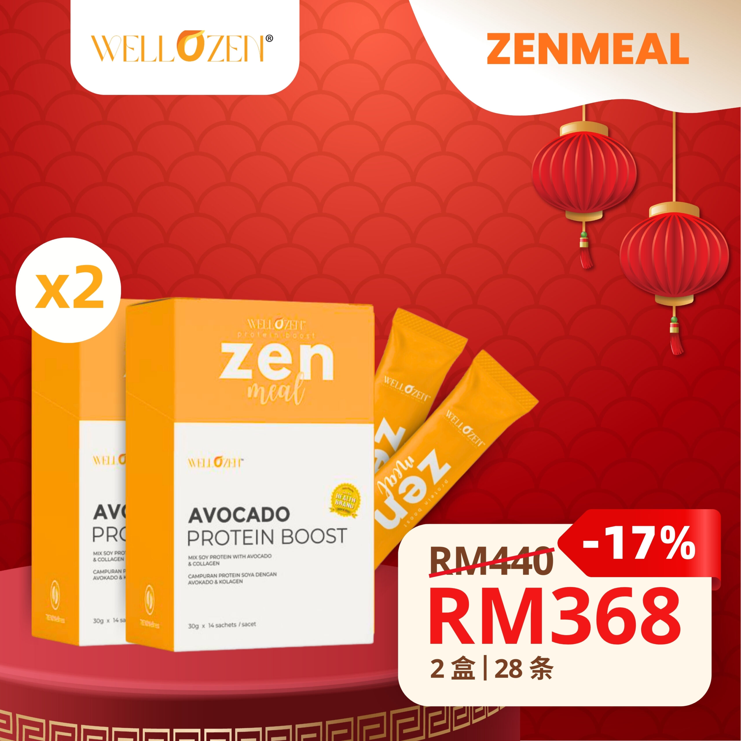 Our best-seller, the Value Pack offers a full month’s worth of Zen Meal It’s ideal for those who are consistently active or want a simple, nutritious solution to replace one meal a day. Each sachet is packed with high plant-based nutrients such as soy protein to support muscle recovery, collagen for skin health, and avocado for natural good fats which is equivalent to 4 whole eggs protein. Instant, portable & delicious—just add water and shake! With every sachet, you get a clean energy boost and sustained fullness—great for busy days. Now ONLY at RM368! *Limited time offer!